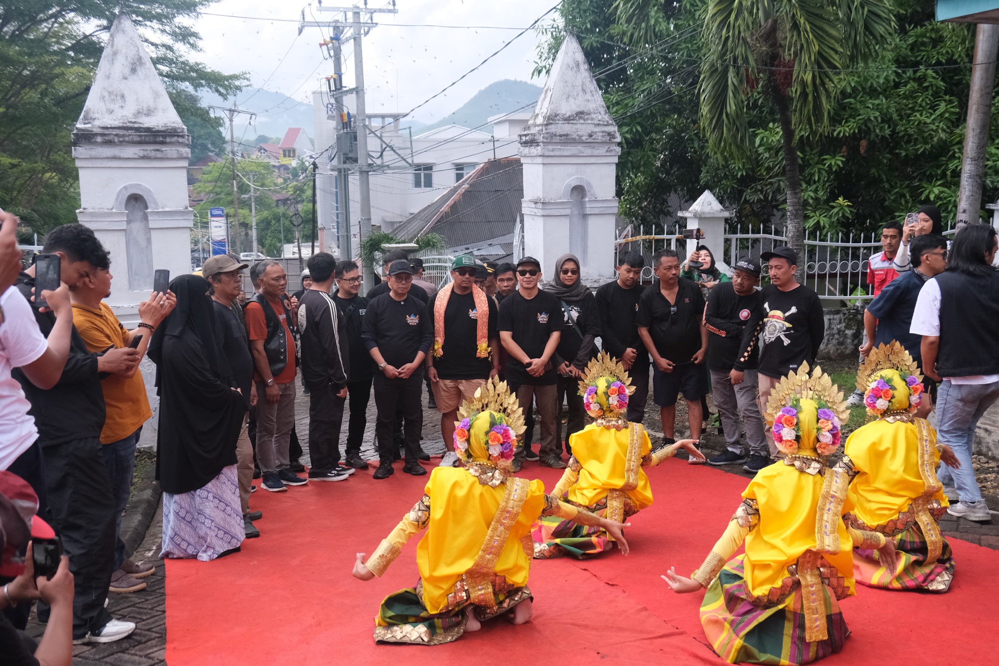 Soppeng, 15 November 2025 — Bupati Soppeng, H. Suwardi Baseng, menerima kunjungan Heru Purwanto selaku Sekjen Ikatan Vespa Indonesia bersama peserta Jambore Vespa Nasional di Villa Yuliana, Sabtu (15/11). Kedatangan ratusan peserta Vespa dari berbagai daerah di Indonesia disambut meriah dengan Tari Paduppa oleh Sanggar Seni SMPN 1 Watansoppeng sebagai bentuk penghormatan khas Bugis kepada tamu.