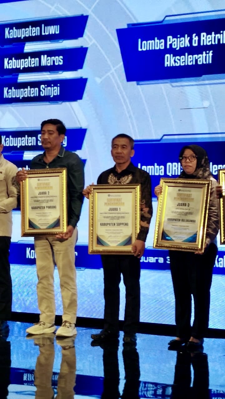 Penghargaan bergengsi tersebut diserahkan langsung oleh Kepala Perwakilan Bank Indonesia Provinsi Sulawesi Selatan dan diterima secara resmi oleh Kepala Badan Pengelolaan Keuangan dan Pendapatan Daerah (BPKPD) Kabupaten Soppeng, Drs. H. Dipa, M.Si, yang mewakili Pemerintah Kabupaten Soppeng.