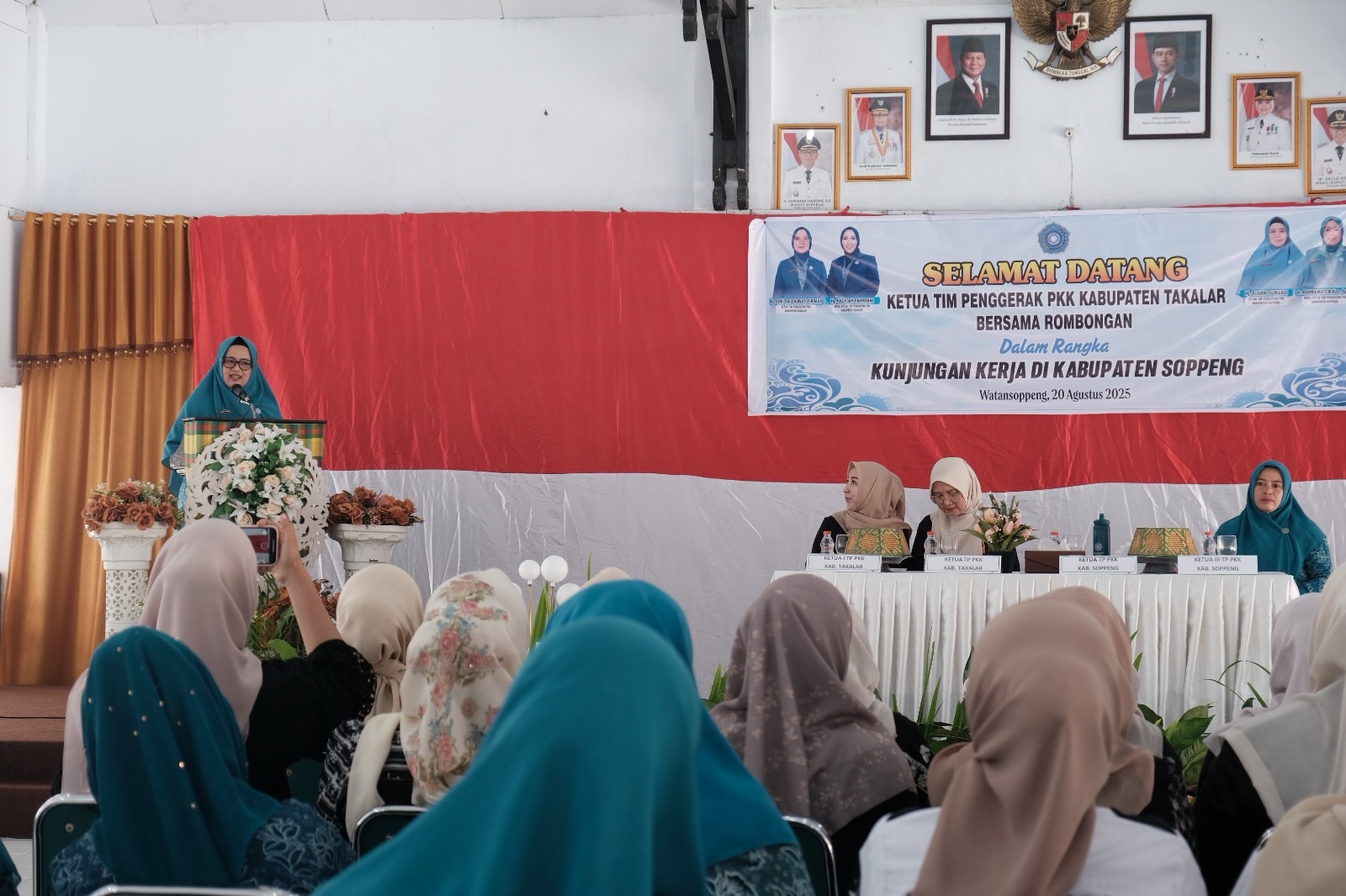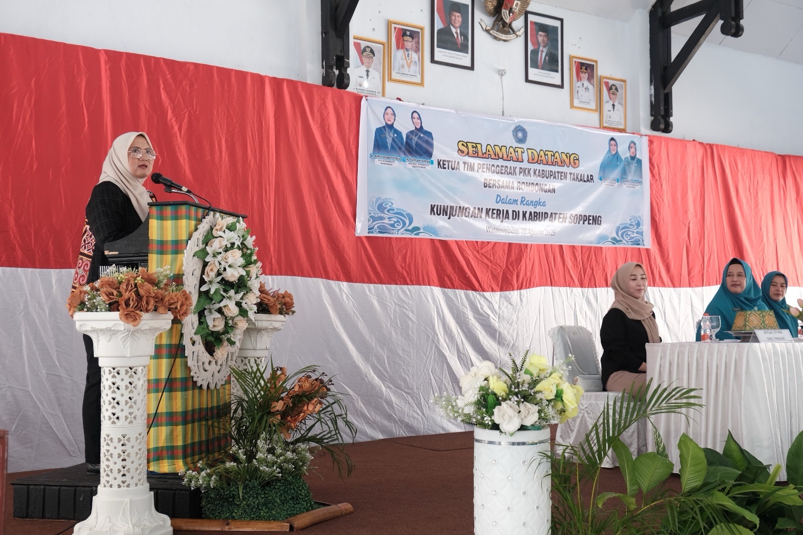 Dalam sambutannya, Ketua TP PKK Kabupaten Takalar, Hj. Dewi Sri Ekowati Firdaus, menyampaikan rasa syukur dan terima kasih atas sambutan hangat yang diberikan TP PKK Kabupaten Soppeng.