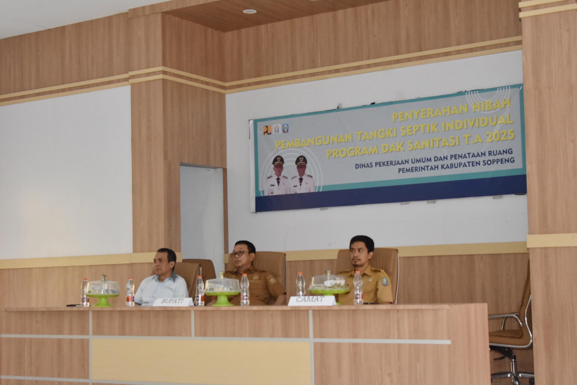 Pemerintah Kabupaten Soppeng melalui Dinas Pekerjaan Umum dan Penataan Ruang (PUPR) menyerahkan hibah pembangunan tangki septik individual Program Sanitasi Tahun Anggaran 2025. Acara penyerahan secara simbolis dipusatkan di ruang pertemuan Kantor Kecamatan Marioriwawo, Selasa (2/9/2025).
