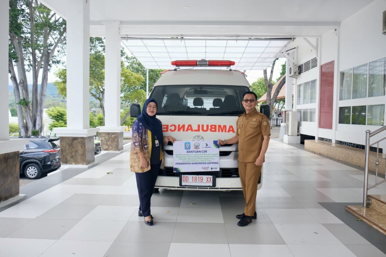 Bupati Soppeng, H. Suwardi Haseng, menerima secara simbolis bantuan Corporate Social Responsibility (CSR) dari Bank Sulselbar berupa 1 (satu) unit mobil ambulance, untuk rumah singgah, pengadaan sarana prasarana air bersih untuk Sekolah Rakyat (Eks RSUD Ajjappange), serta penataan halaman Taman Gasis.