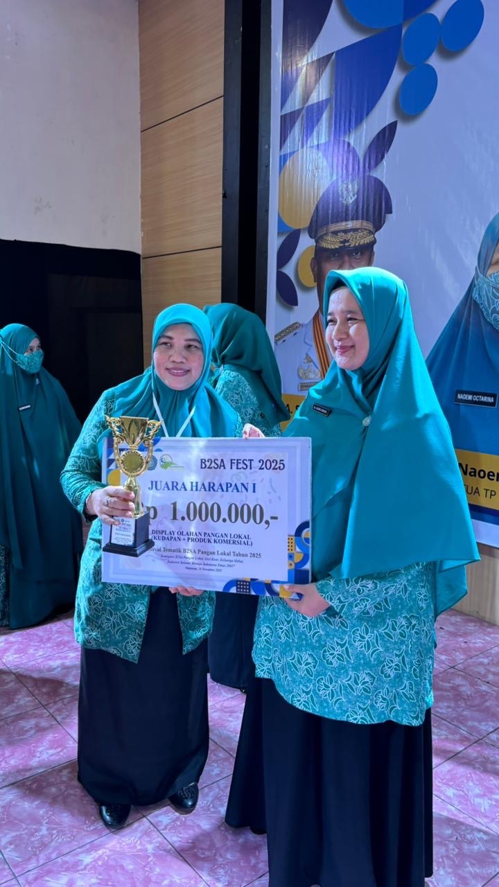Melalui sentuhan khas olahan pangan lokal, Tim Penggerak PKK Kabupaten Soppeng berhasil mencuri perhatian juri dan meraih Juara Harapan 1 pada lomba Display Olahan Pangan Lokal B2SA Fest 2025. Ajang ini digelar oleh Dinas Ketahanan Pangan Provinsi Sulawesi Selatan bersama Tim Penggerak PKK Provinsi Sulawesi Selatan, di Gedung Mulo, Makassar, Selasa (18/11/2025).