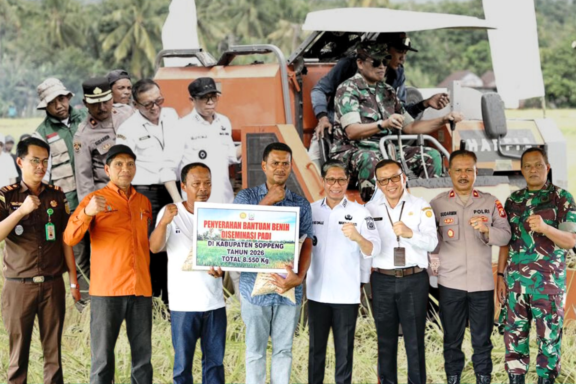 Dalam kegiatan tersebut juga dilakukan penyerahan bantuan benih diseminasi padi sebanyak 8.550 kg, dari BRMP Propinsi Sulsel ke kelompok tani Sipurio ,Tonrong lapokko dan Seppae.