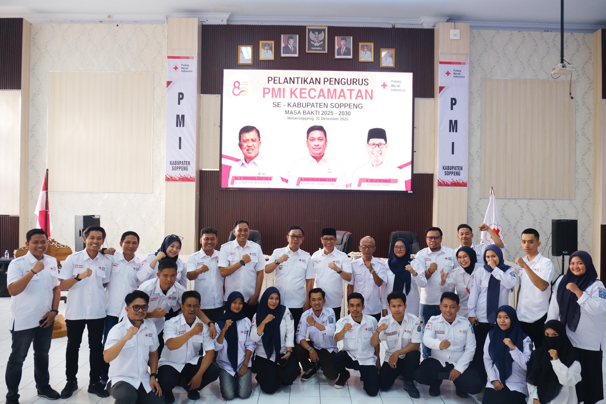 Palang Merah Indonesia (PMI) Kabupaten Soppeng melaksanakan Pelantikan Pengurus PMI Kecamatan se-Kabupaten Soppeng Masa Bakti 2025–2030 yang berlangsung di Aula Kantor Gabungan Dinas Kabupaten Soppeng, Rabu (31/12/2025).
