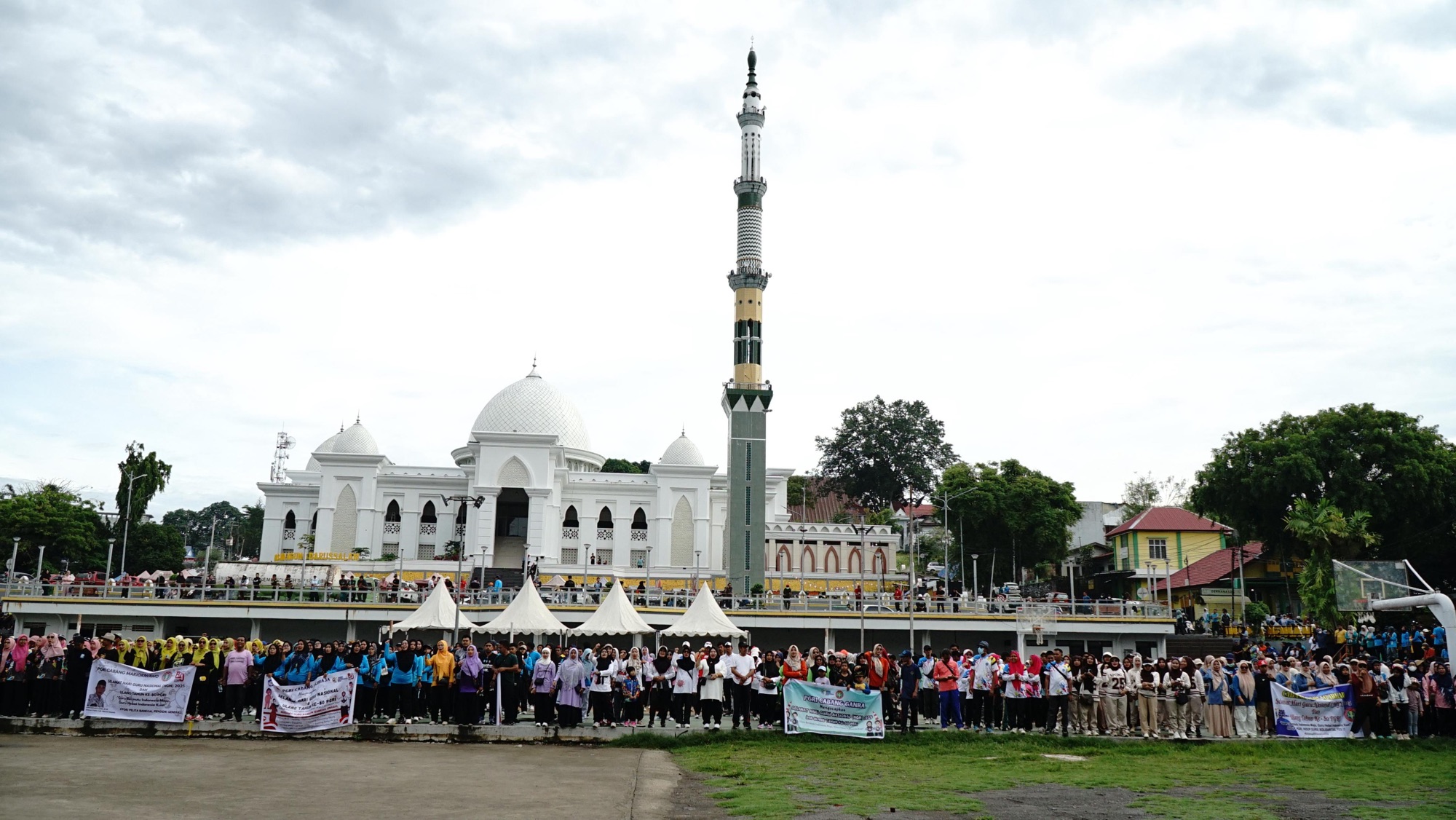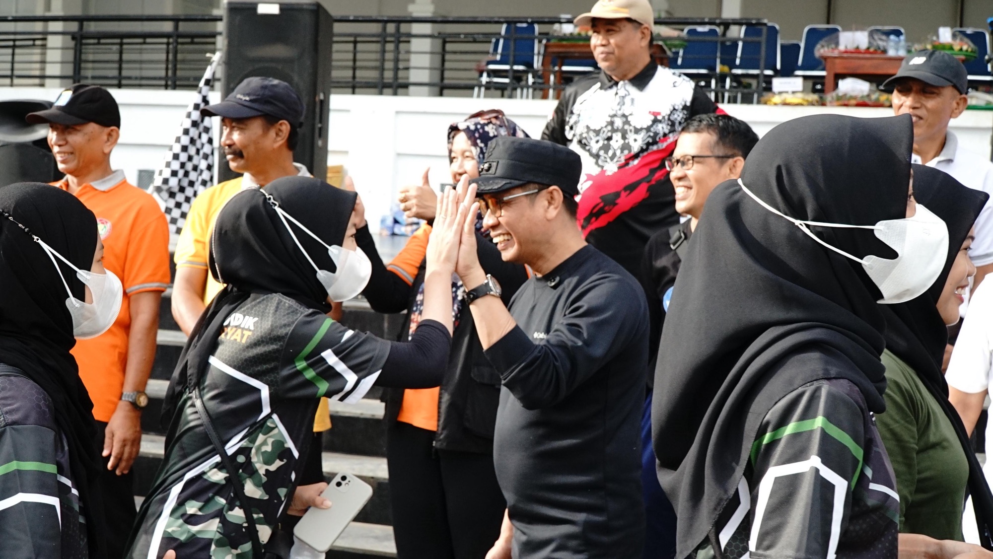 Kegiatan jalan santai berlangsung meriah dan penuh semangat. Ribuan guru dan siswa tampak antusias mengikuti kegiatan ini sebagai bentuk kebersamaan, kesehatan, dan penghormatan kepada guru.
