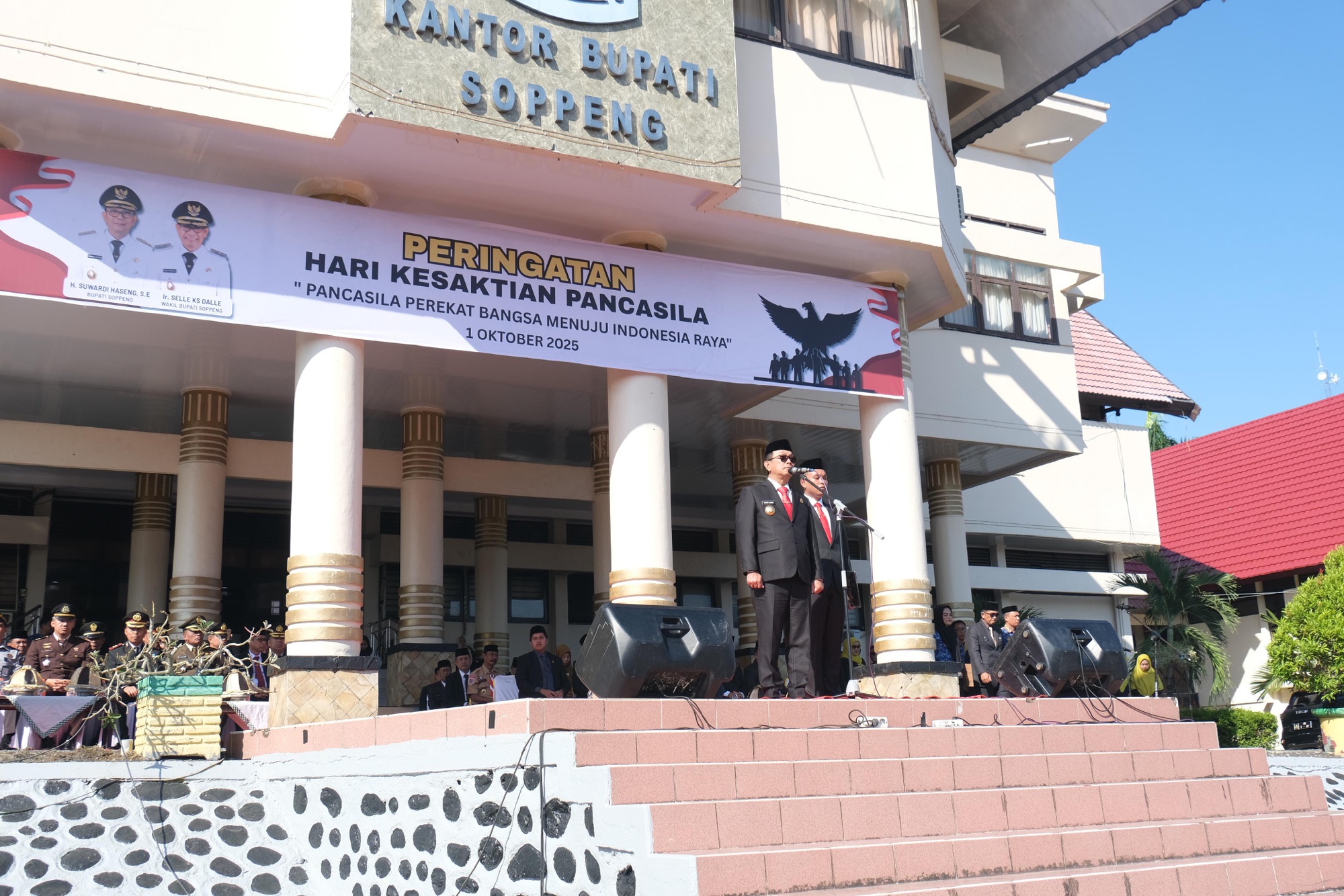 Pemerintah Kabupaten Soppeng menggelar Upacara Peringatan Hari Kesaktian Pancasila Tahun 2025 di Halaman Kantor Bupati Soppeng, Rabu (1/10/2025).