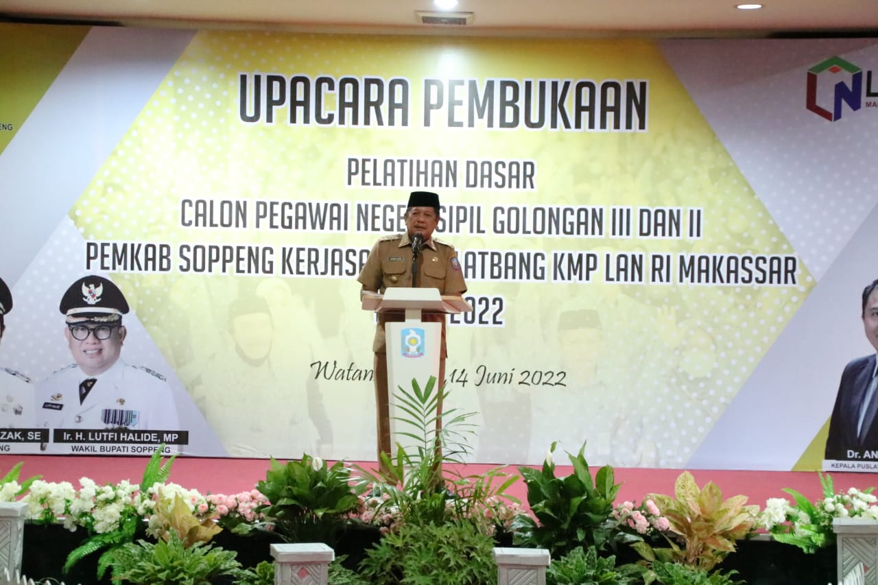 Badan Kepegawaian dan Pengembangan Sumber Daya Manusia (BKPSDM) Kab.Soppeng menggelar acara Pembukaan pelatihan dasar calon pegawai negeri sipil golongan ...