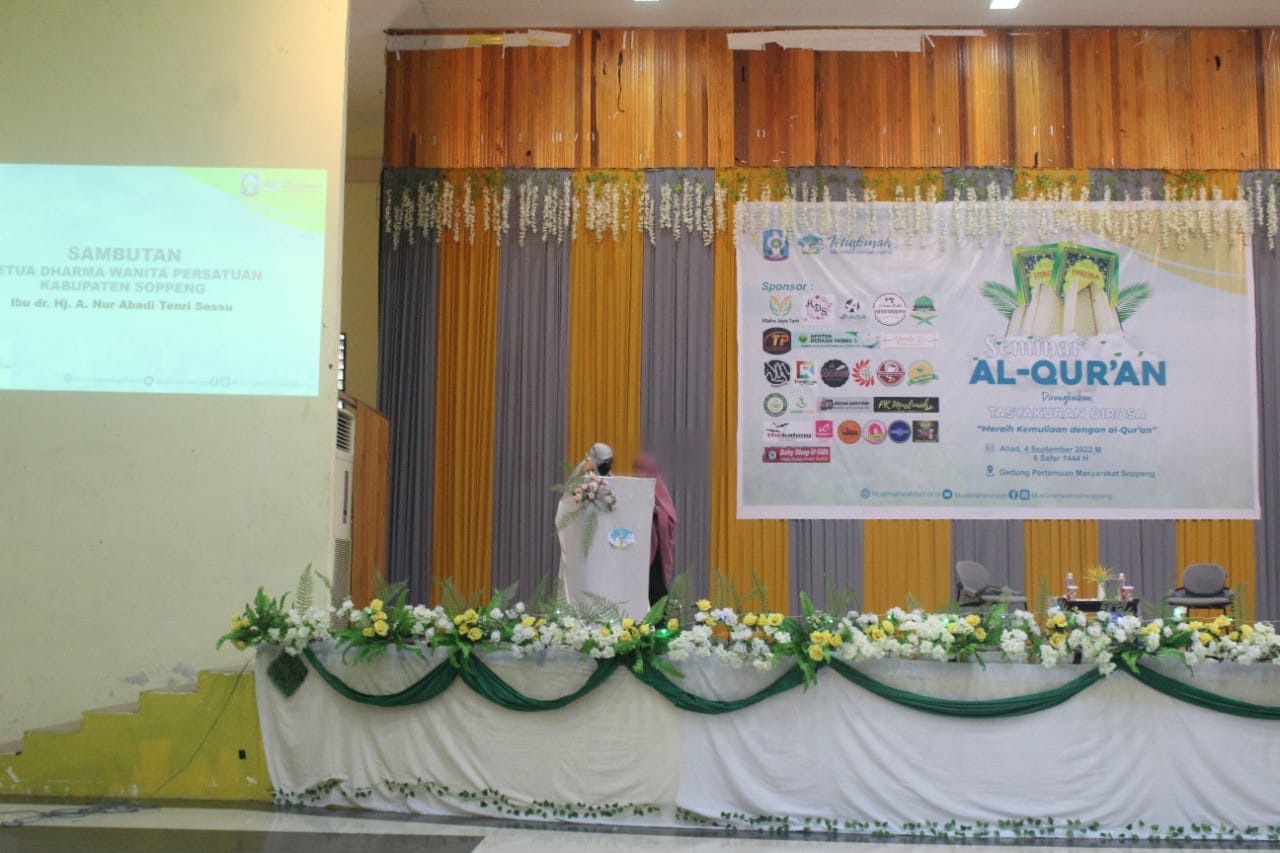Dr. H. A. Nur Abadi Tenri Sessu selaku Ketua Dharma Wanita Persatuan Kabupaten Soppeng menghadiri sekaligus membuka acara Seminar ...
