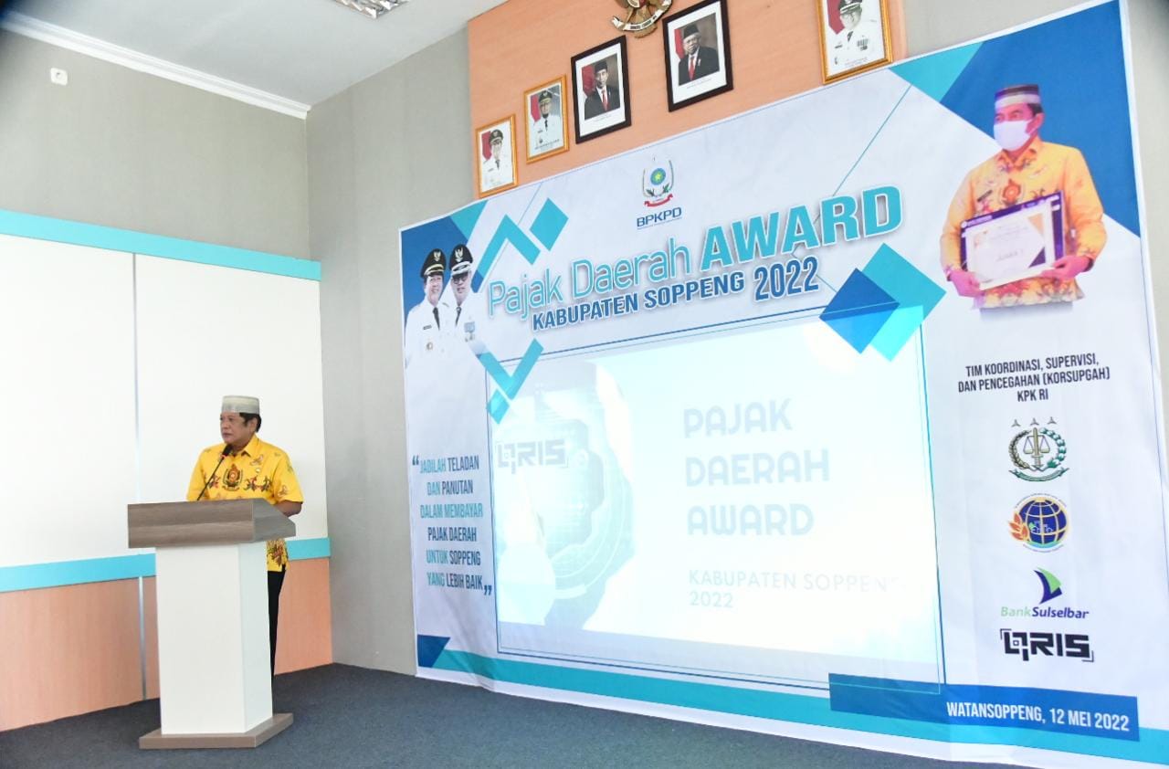 Badan Pengelolaan Keuangan dan Pendapatan Daerah (BPKPD) Kab. Soppeng menggelar kegiatan Pajak Daerah Award Kabupaten Soppeng Tahun 2022, bertempat ...