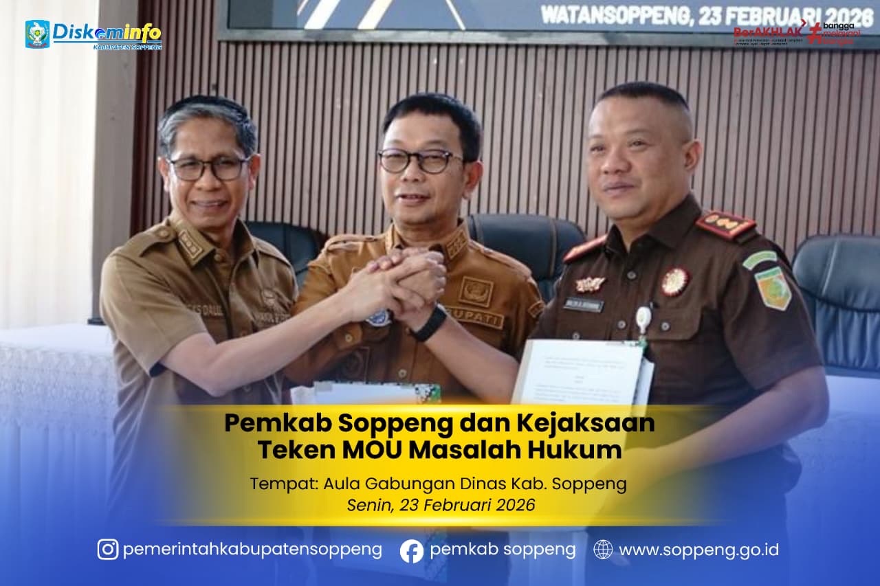 Pemerintah Kabupaten Soppeng bersama Kejaksaan Negeri Soppeng melaksanakan Penandatanganan Nota Kesepahaman (Memorandum of Understanding/MoU) tentang Kerja Sama dan Koordinasi ...