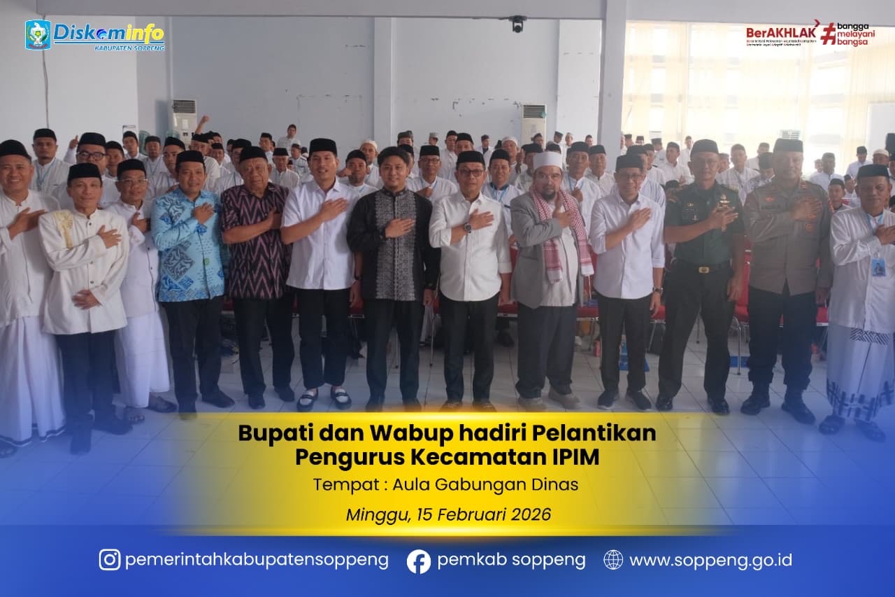 Bupati Soppeng Suwardi Haseng bersama Wakil Bupati Soppeng Selle KS Dalle menghadiri Pelantikan Pengurus Cabang Ittihad Persaudaraan ...