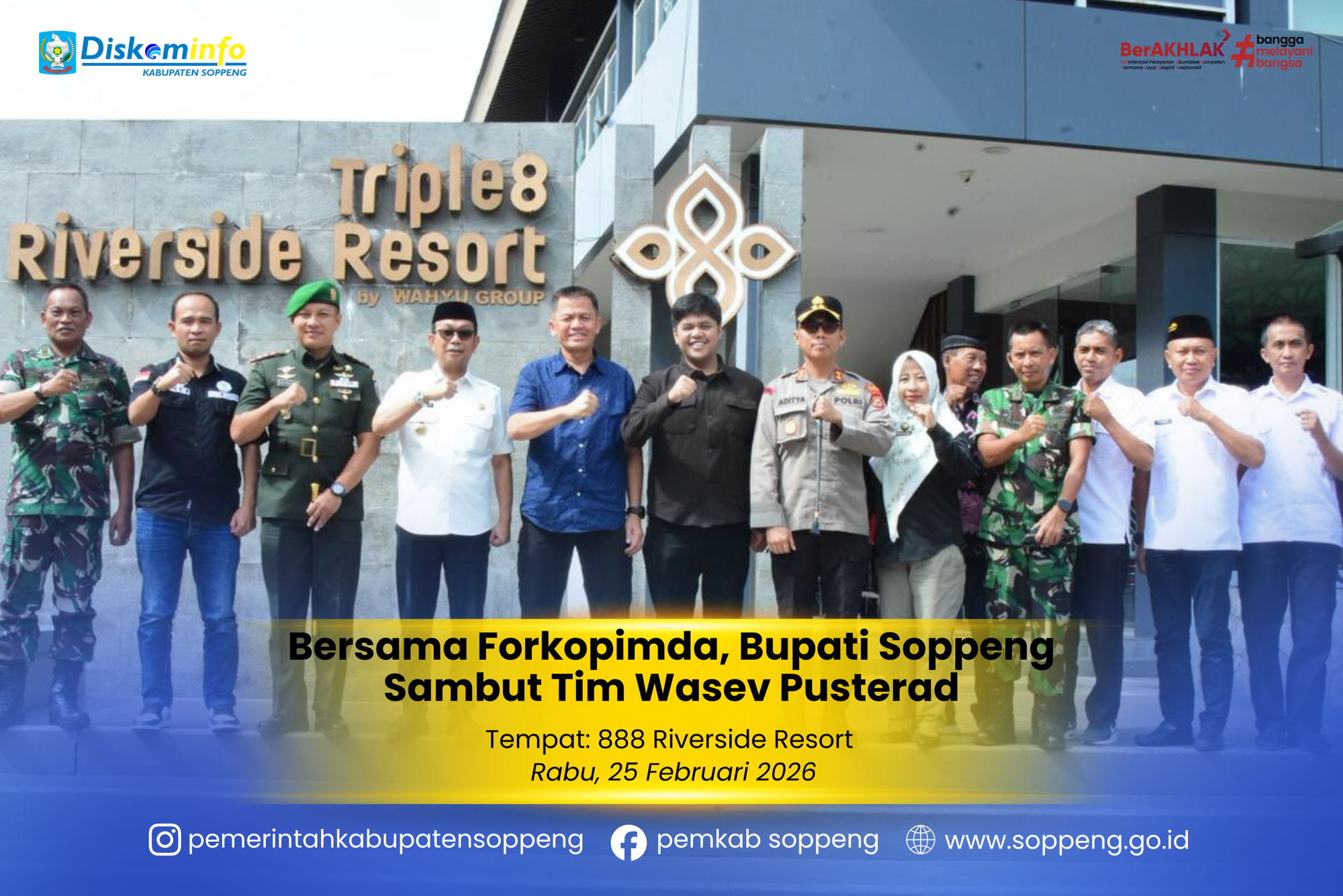 Bupati Soppeng, H. Suwardi Haseng, S.E., menyambut kedatangan Tim Wasev (Pengawasan dan Evaluasi) Pusterad (Pusat Teritorial Angkatan ...