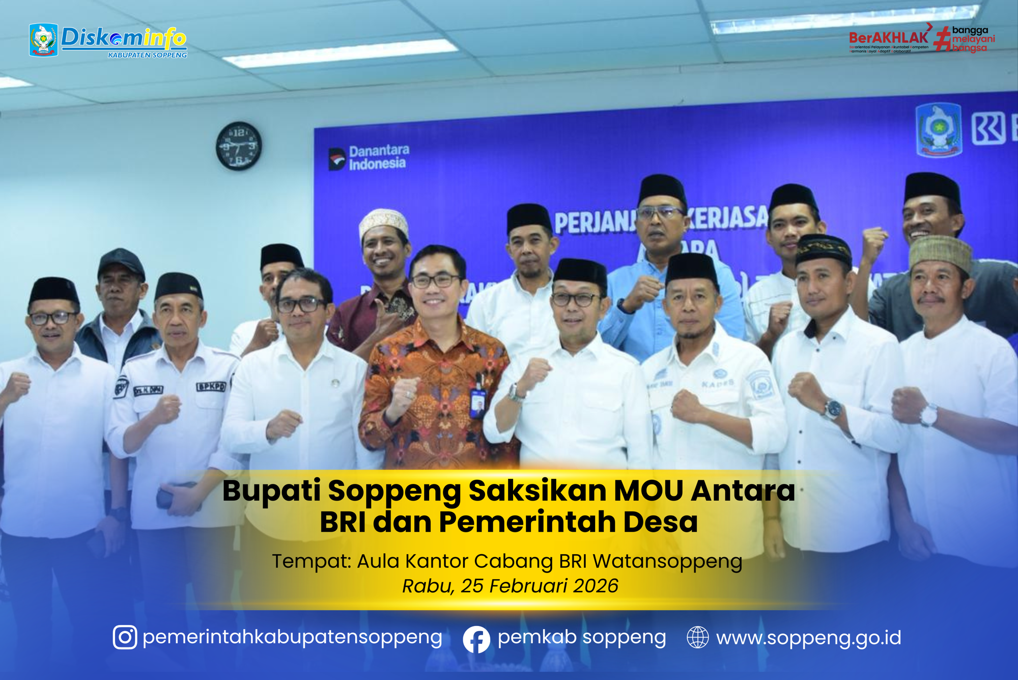 Bupati Soppeng, H. Suwardi Haseng, S.E., saksikan Penandatanganan Nota Kesepahaman (MoU) dan Perjanjian Kerja Sama (PKS) antara ...