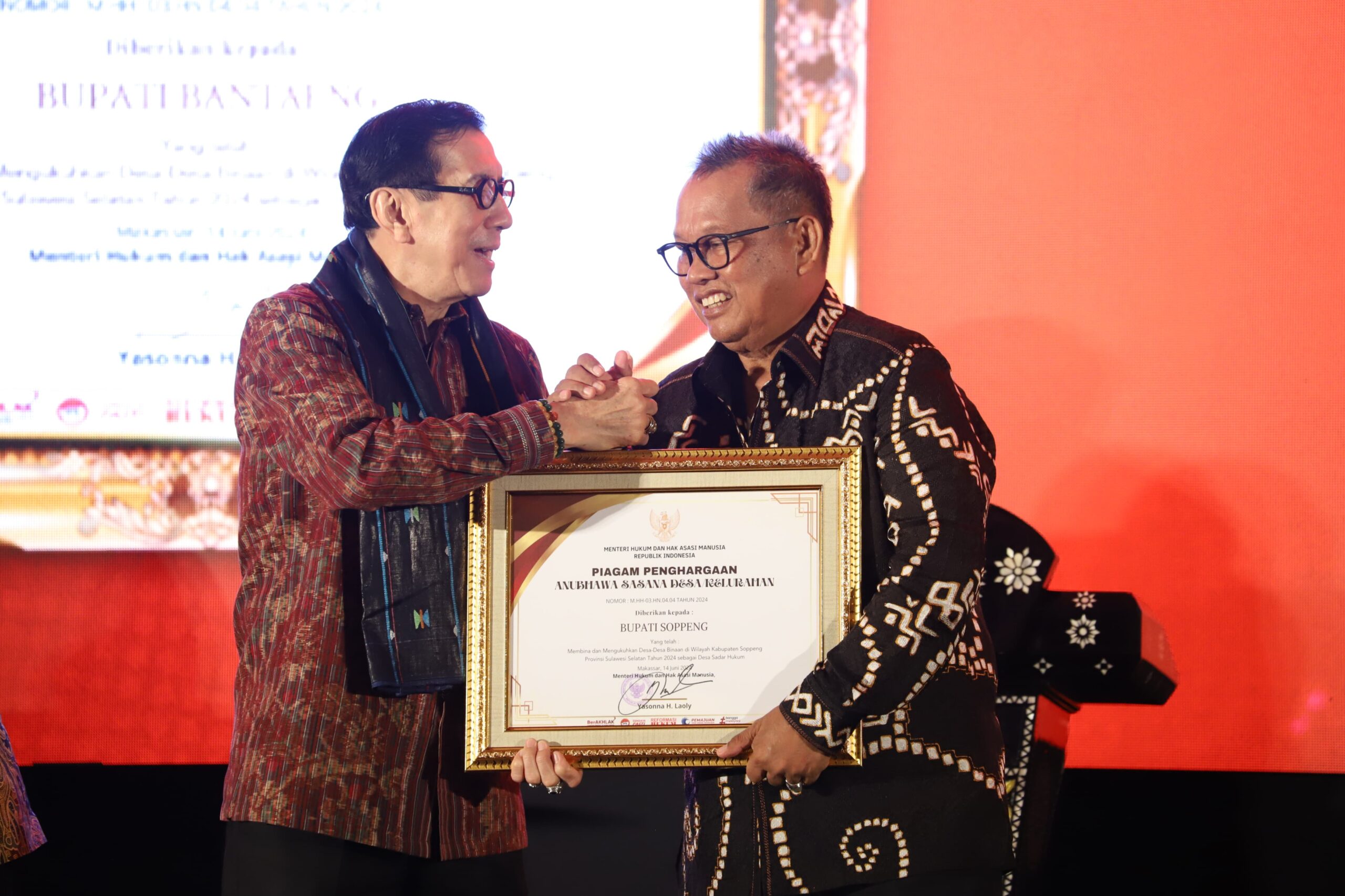 Wakil Bupati Soppeng, Ir.H.Lutfi Halide, MP, menghadiri Acara Peresmian Desa/ Kelurahan Sadar Hukum, serta Penerimaan Penghargaan Anubhawa Sasana Desa ...