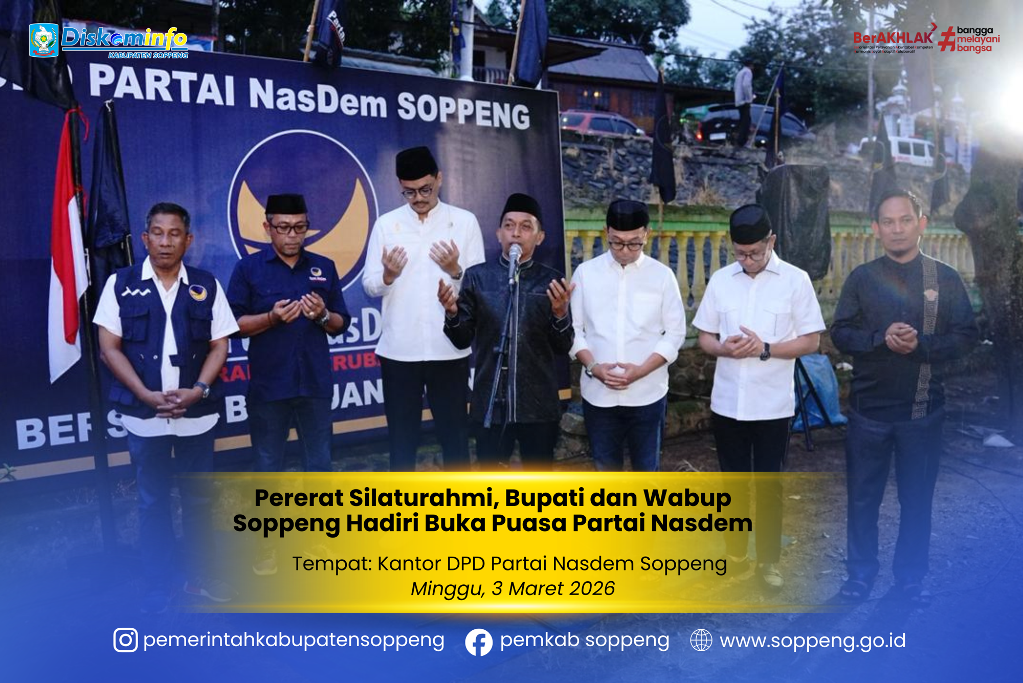 Bupati Soppeng, Suwardi Haseng, bersama Wakil Bupati Soppeng, Selle KS Dalle, menghadiri kegiatan buka puasa bersama yang digelar oleh ...