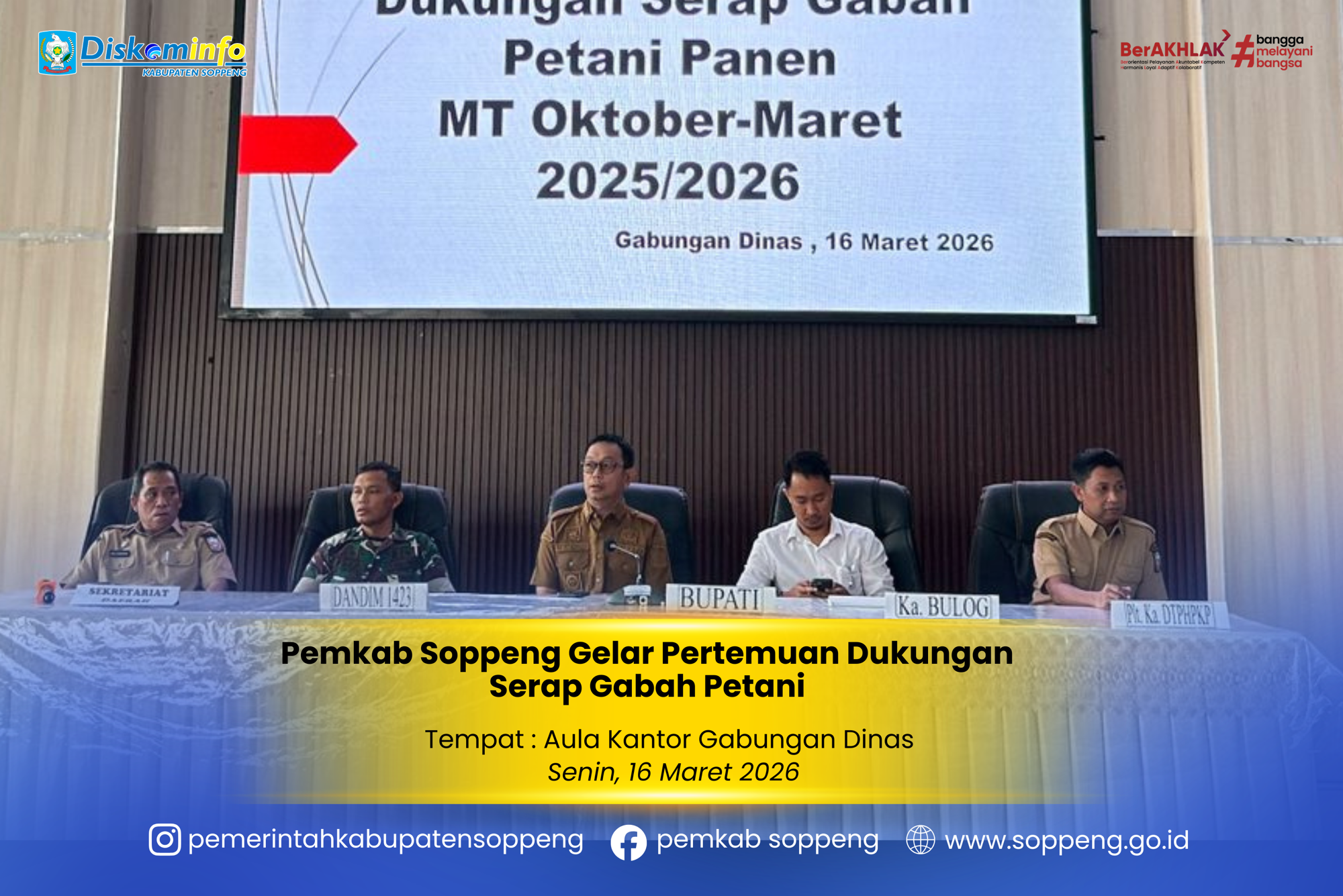 Pemerintah Kabupaten Soppeng menggelar Pertemuan Koordinasi Dukungan Serap Gabah Petani Panen MT Oktober–Maret 2025/2026 di Aula Kantor Gabungan Dinas ...