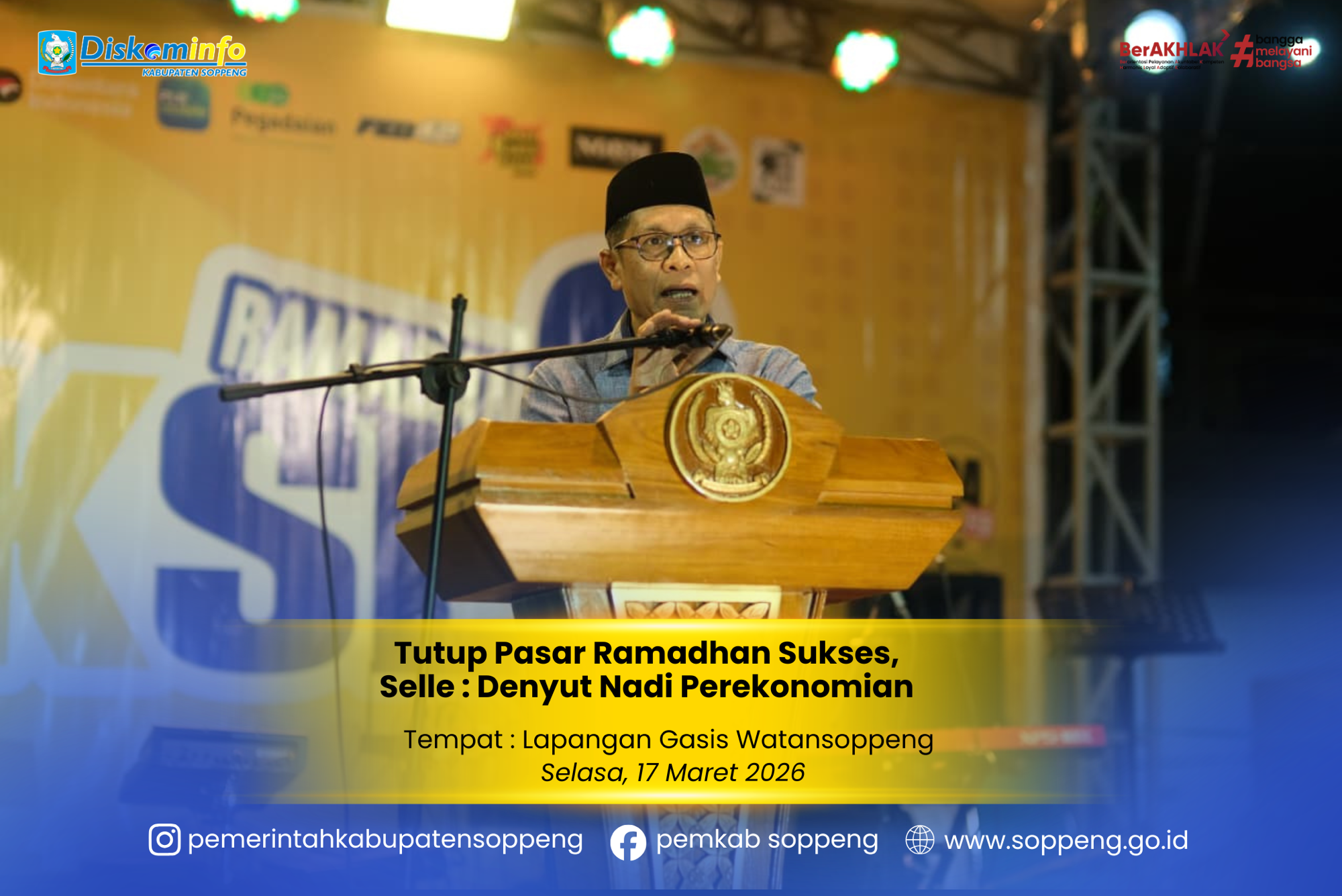 Wakil Bupati Soppeng, Ir. Selle KS Dalle, secara resmi menutup kegiatan Pasar Ramadhan Sukses Kabupaten Soppeng Tahun 2026 yang ...