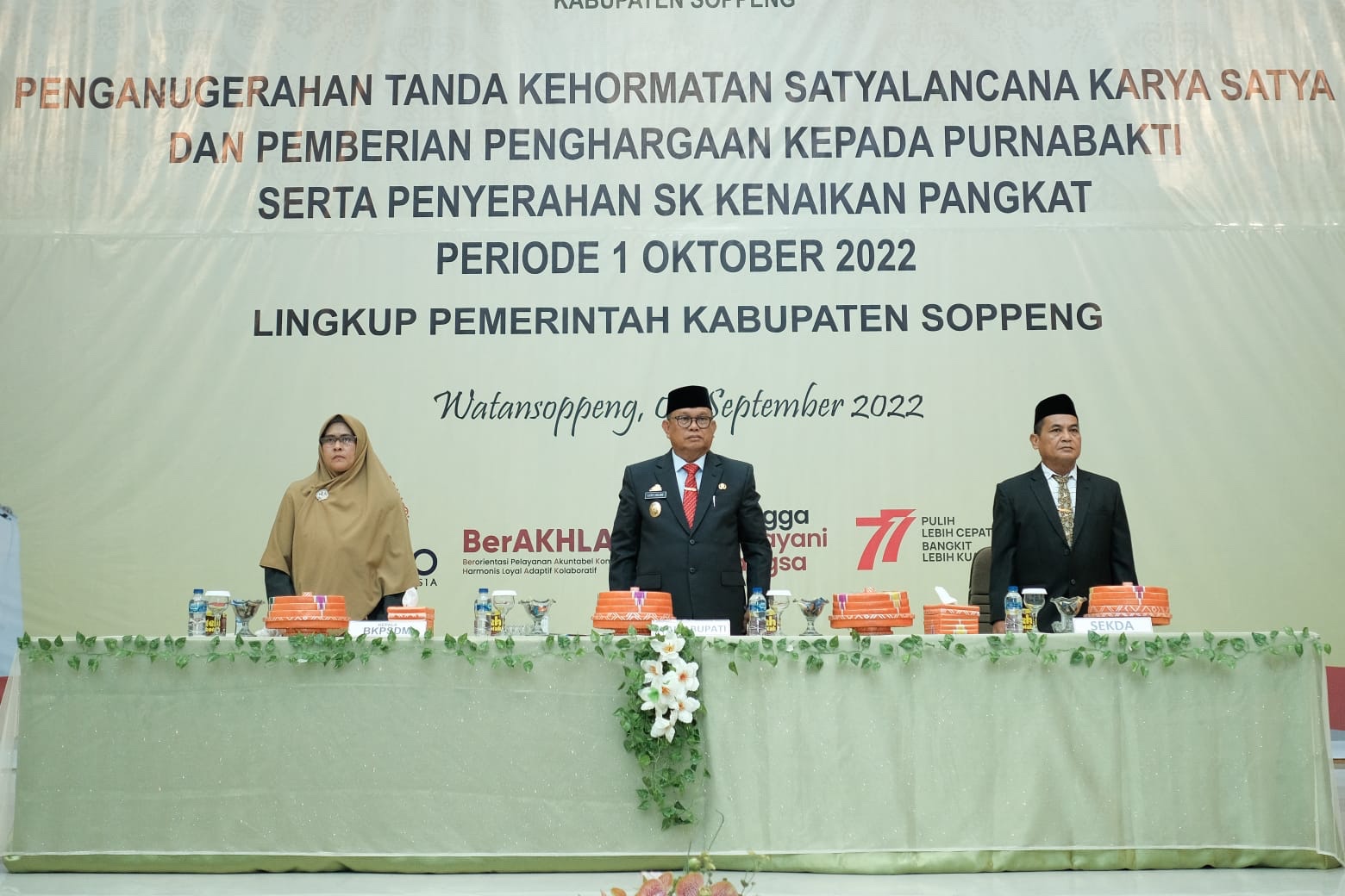 Badan Kepegawaian dan Pengembangan Sumber Daya Manusia (BKPSDM) Kab.Soppeng melaksanakan acara Penganugerahan tanda kehormatan satyalancana karya satya dan pemberian ...