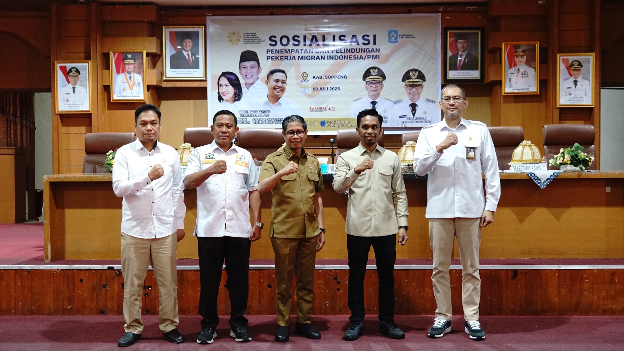 Sebagai wujud komitmen dalam melindungi hak-hak Pekerja Migran Indonesia (PMI), Balai Pelayanan, Pelindungan Pekerja Migran Indonesia Sulawesi Selatan menggandeng Pemerintah Kabupaten (Pemkab) Soppeng, menggelar sosialisasi bertajuk “Penempatan dan Pelindungan Pekerja Migran Indonesia (PMI)”.