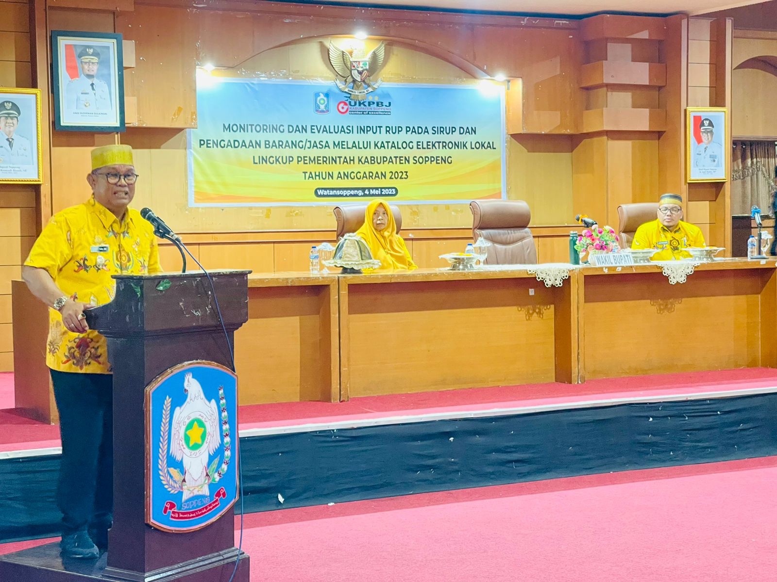 Bagian Pengadaan Barang dan Jasa Sekretariat Daerah Kabupaten Soppeng melaksanakan acara Monitoring dan Evaluasi Input RUP Pada Sirup dan Pengadaan Barang/Jasa Melalui Katalog Elektronik Lokal Lingkup Pemerintah Kabupaten Soppeng Tahun Anggaran 2023, bertempat di Ruang Pola Kantor Bupati Soppeng Kamis (4 Mei 2023).